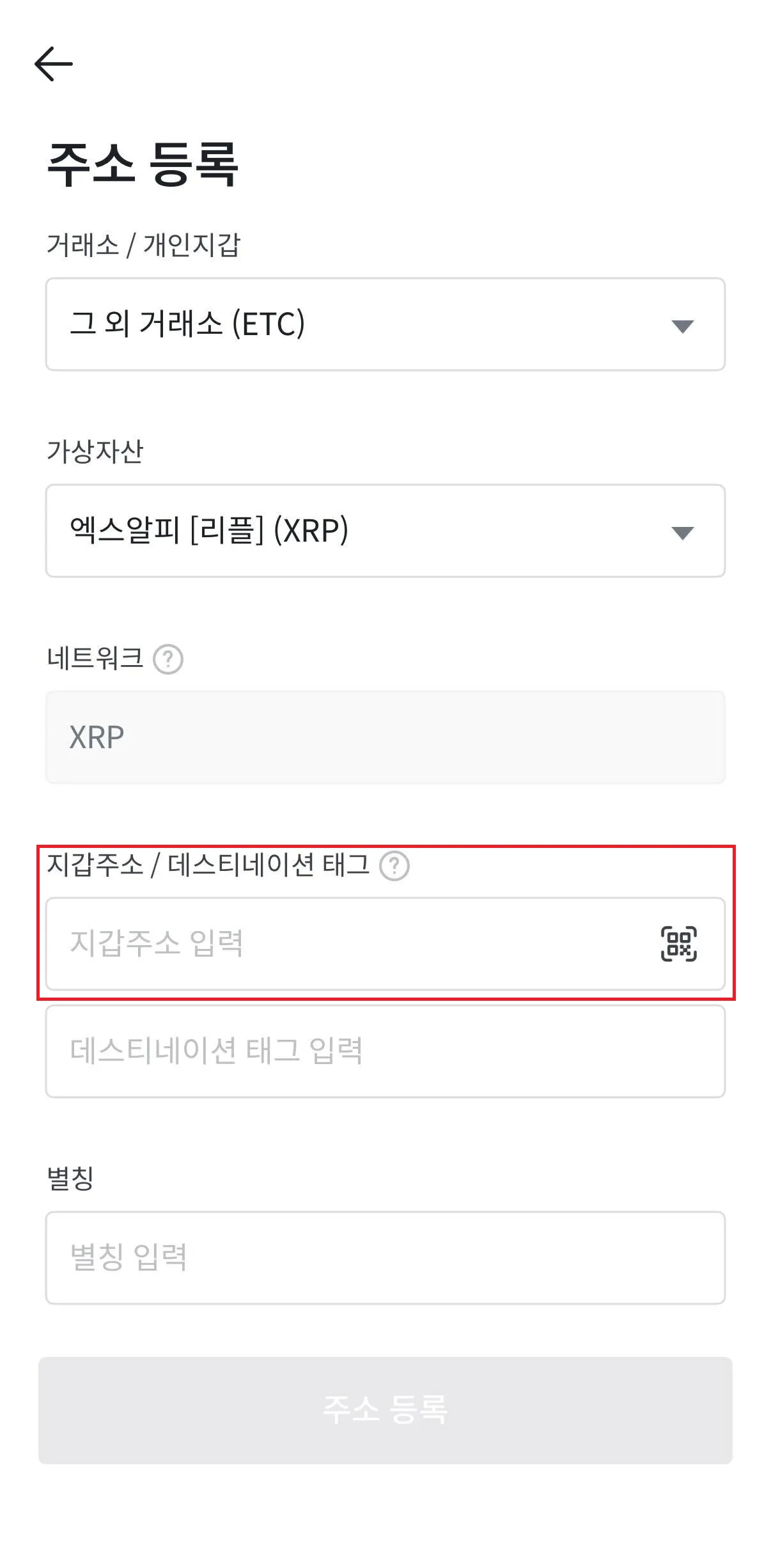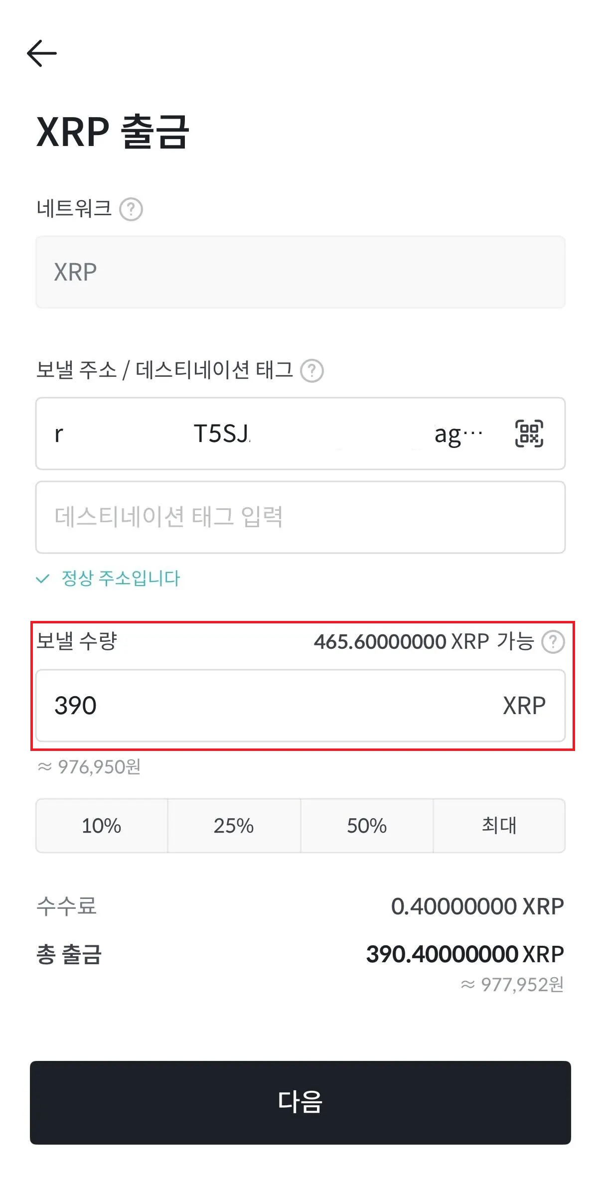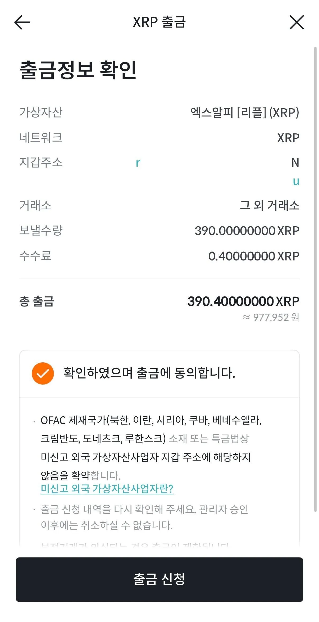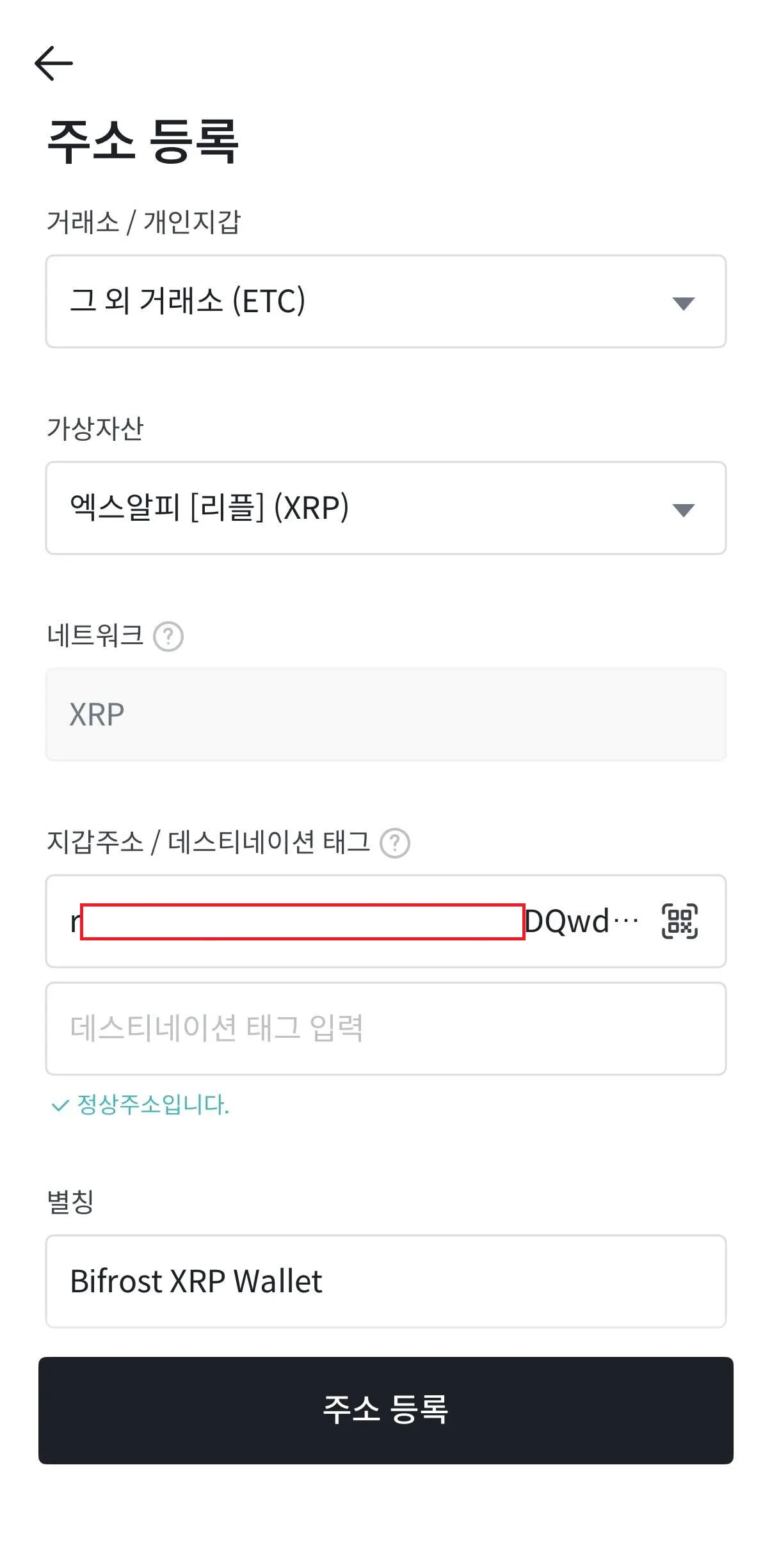a. XRP Ledger 출금 주소 등록