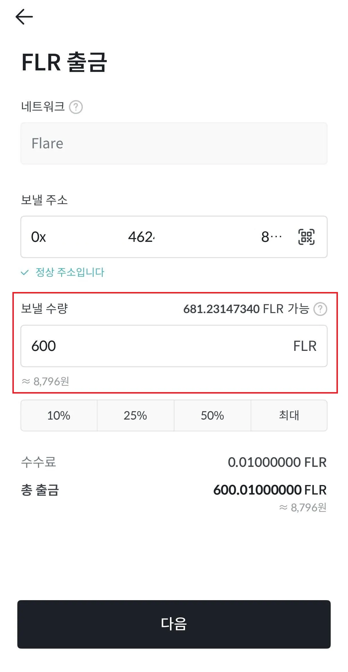 b. Flare Network 출금 주소 등록