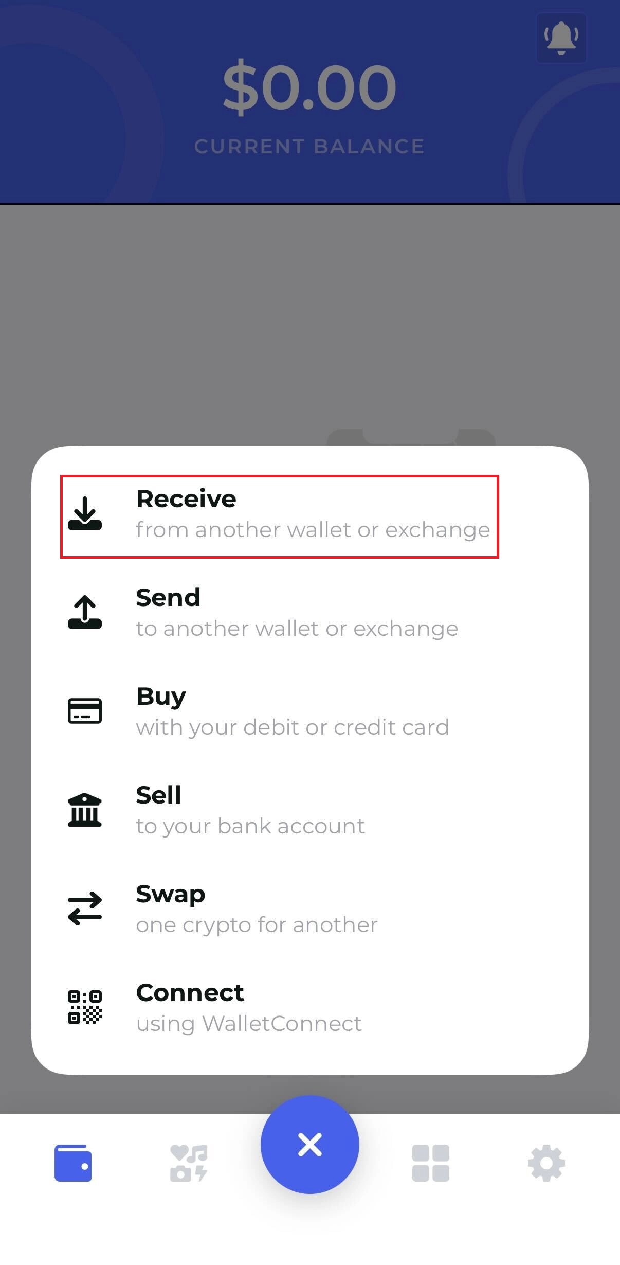 Receive (입금 주소) 클릭합니다.