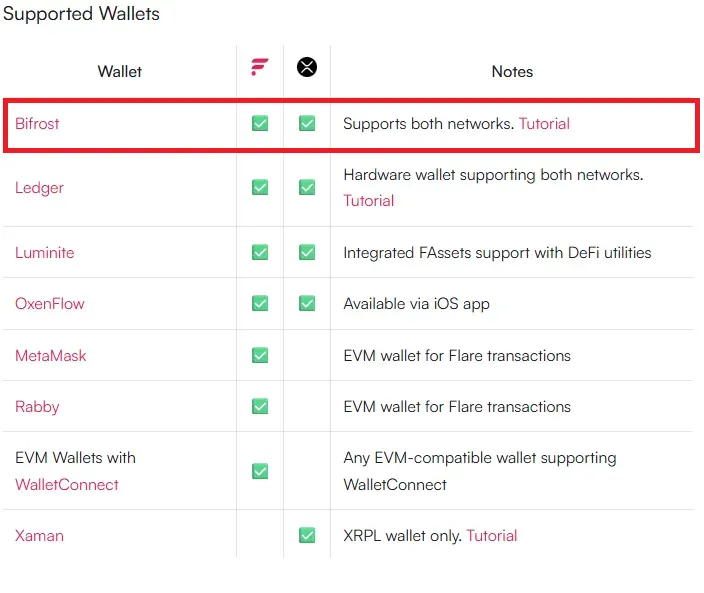 (월렛 종류 마다 세팅 방식과 서명 방식에만 차이가 있는 것이기에 XRPfi를 위해 다른 지갑을 사용하시더라도, Bifrost Wallet 기준으로 작성된 Flare Network 위의 여러 탈중앙화 앱 실전 가이드를 따라하는 데 있어 어려움이 없으실 겁니다.)