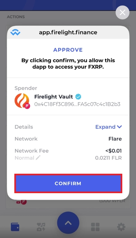 이후 Approve FXRP를 눌러 Bifrost Wallet 앱에 나타난 트랜잭션을 승인합니다.