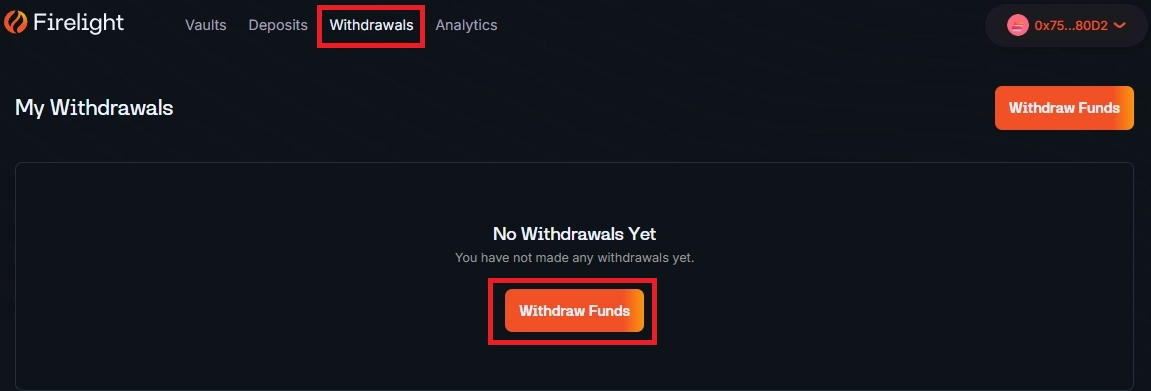 만약 스테이킹한 FXRP를 회수하고 싶으시다면, 상단의 Withdrawals를 눌러 위에서 했던 과정을 동일하게 진행하시면 FXRP를 회수하실 수 있습니다!